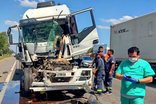 Por la violencia del impacto, la cabina del Iveco quedó totalmente deformada y sin embargo su conductor salió ileso del accidente, acusando sólo un dolor en una de sus rodillas, mientras que el acoplado impactado prácticamente parecía no haber acusado el golpe.