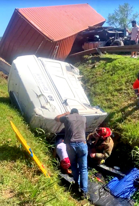 Afortunadamente, ambos camioneros fueron rescatados con vida y se encontraban conscientes al momento de ser trasladados al hospital municipal, junto con la señora de la bicicleta.