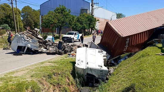 Tras el formidable impacto, el camión que se dirigía hacia Capital se desplaza hacia su derecha, cayendo su cabina al zanjón; mientras que la cabina del otro camión literalmente se desprende del vehículo y finaliza sobre la colectora Sur, a metros de la calle P. Dallera, en uno de los ingresos al barrio Las Campanas.
